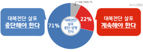 ¿ì¼± ÀÀ´äÀÚÀÇ 71%´Â ‘´ëºÏÀü´Ü »ìÆ÷¸¦ Áß´ÜÇØ¾ß ÇÑ´Ù’°í ´äÇß´Ù. ‘´ëºÏÀü´Ü »ìÆ÷¸¦ °è¼ÓÇØ¾ß ÇÑ´Ù’´Â ÀÀ´äÀº 22%·Î ³ªÅ¸³µ´Ù.