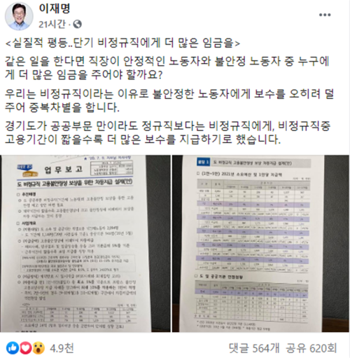 ÀÌÀç¸í °æ±âµµÁö»ç´Â ÃÖ±Ù ÀÚ½ÅÀÇ SNS¸¦ ÅëÇØ ÀÌ °°Àº ³»¿ëÀÇ ‘°æ±âµµ ºñÁ¤±ÔÁ÷ °í¿ëºÒ¾ÈÁ¤¼º º¸»óÀ» À§ÇÑ Â÷µîÁö±Þ ¼³°è(¾È)’À» °ø°³Çϸç ÀÌ °°Àº »ç¾÷À» ÃßÁøÇϰڴٴ ¶æÀ» ¹àÇû´Ù.