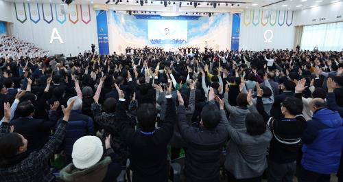 ÀÌ¾î ¸ñȸÀÚµéÀ» ÇâÇØ “¿À´Ã³¯Àº ¿¹¾ðÀÌ ÀÌ·ïÁö´Â ¶§´Ù. Áï ½ÇüµéÀÌ ³ªÅ¸³ª´Â ¶§À̰í, ¼º°æÀº (¿ì¸®¿¡°Ô) ±× ³ªÅ¸³ ½Çü¸¦ º¸°í ¹ÏÀ¸¶ó°í Çϰí ÀÖ´Ù”¸é¼ “¿¹¼ö´ÔÀº ‘ÇàÇÏ¸é¼ °¡¸£Ä¡¶ó’°í Çϼ̴Ù. ÇԺηΠÁ¤ÁËÇÏÁö ¸»°í ¼º°æ ÇÑ ±¸Àý ÇÑ ±¸ÀýÀ» Á¦´ë·Î È®ÀÎÇÏ°í ±ú´ÝÀÚ. Ȥ¿©¶óµµ À߸ø ÀüÇÏÁö ¾Êµµ·Ï °è½Ã·Ï ¾Õ¿¡¼ ÀÚ±â ÀÚ½ÅÀ» µ¹¾Æº¸´Â ¸ñÀÚ°¡ µÇÀÚ”°í °Åµì ´çºÎÇß´Ù.