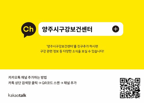 īī¿ÀÅå¿¡ °¡ÀÔÇÑ ½Ã¹ÎÀ̶ó¸é ´©±¸µçÁö ÀÌ¿ëÇÒ ¼ö ÀÖÀ¸¸ç īī¿ÀÅå »ó´Ü °Ë»öâ¿¡ ‘¾çÁֽà ±¸°º¸°Ç¼¾ÅÍ’¸¦ °Ë»öÇϰųª ¾È³»¹®¿¡ Æ÷ÇÔµÈ QRÄڵ带 ½ºÄµÇØ Ä£±¸ Ãß°¡ÇÏ¸é µÈ´Ù.