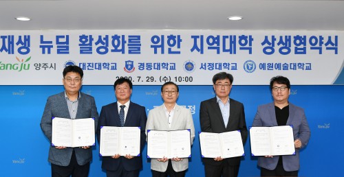 ¾çÁÖ½Ã(½ÃÀå À̼ºÈ£)´Â 29ÀÏ ½Ãû »óȲ½Ç¿¡¼ µµ½ÃÀç»ý ´ºµô»ç¾÷ÀÇ ¼º°øÀûÀÎ ÃßÁø°ú Áö¿ª °Å¹ö³Í½º ±â¹Ý ±¸ÃàÀ» À§ÇØ ´ëÁø´ë·°æµ¿´ë·¼Á¤´ë·¿¹¿ø¿¹¼ú´ë(ÀÌÇÏ Áö¿ª´ëÇÐ)¿Í ¾÷¹«Çù¾àÀ» ü°áÇß´Ù°í ¹àÇû´Ù.