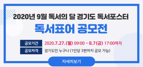 µ¶¼Ç¥¾î´Â °æ±âµµ¹ÎÀ̸é 1Àδç 3Æí±îÁö ÀÀ¸ð°¡´ÉÇϸç, °ø¸ð±â°£Àº 8¿ù7ÀÏ(±Ý) ¿ÀÈÄ 5½Ã±îÁö´Ù. ÀÀ¸ð¹æ¹ýÀº °æ±âµµ»çÀ̹öµµ¼°ü ȨÆäÀÌÁö(https://www.library.kr)¿¡¼ ¿Â¶óÀÎ Âü¿©·Î °¡´ÉÇϸç, °ø¸ð °á°ú´Â 8¿ù 12ÀÏ ÀÌÈÄ ¹ßÇ¥ÇÑ´Ù.