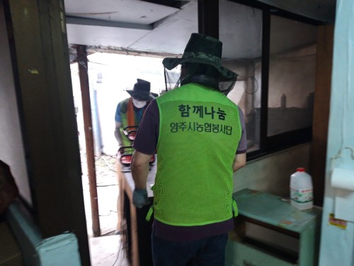 ³óÇù ¾çÁÖ½ÃÁöºÎ(ÁöºÎÀå ¿ÀÁÖÇÐ)¿Í ¾çÁÖ³óÇù(Á¶ÇÕÀå ¹Úµµ¿µ)Àº 21ÀÏ Áö³ ÁýÁßÈ£¿ì·Î ÀÎÇØ '³óÇù ³ó¾÷ÀÎ ÇູÄݼ¾ÅÍ'¿¡ Á¢¼öµÈ ÁÖÅÃħ¼ö ÇÇÇØ ³ó°¡ÀÇ ¾î·Á¿òÀ» µ½°íÀÚ ³óÇùºÀ»ç´Ü 20¿©¸íÀÌ ¸¶Àüµ¿¿¡¼ ¼öÇØ ³ó°¡ ÁÖÅà º¹±¸Áö¿ø ÀÛ¾÷À» Çß´Ù.