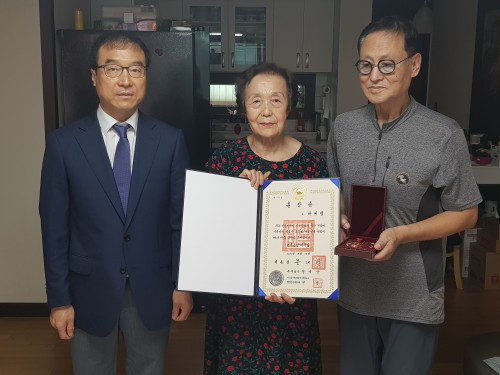 °æ±âºÏºÎº¸ÈÆÁöû(ÁöûÀå ȲÈÄ¿¬)Àº 20ÀÏ Á¦75Áֳ⠱¤º¹Àý °è±â·Î Æ÷»óÀÌ ¼ö¿©µÈ µ¶¸³À¯°øÀÚÀÇ ÈÄ¼Õ 3¸í¿¡°Ô Æ÷»óÀ» Àü¼öÇÏ¿´´Ù.