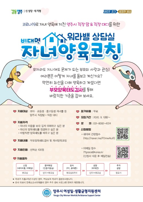 ±âŸ ÀÚ¼¼ÇÑ »çÇ×Àº ¾çÁֽÿ©¼ºÀÏ»ýȰ±ÕÇüÁö¿ø¼¾ÅÍ È¨ÆäÀÌÁö(www.yangju.go.kr/vision/index/do)³ª ¾çÁֽà ¿©¼ºº¸À°°ú ¿©¼ºÀÏ»ýȰ±ÕÇüÆÀ(031-8082-4224)À¸·Î ¹®ÀÇÇÏ¸é ¾È³»¹ÞÀ» ¼ö ÀÖ´Ù.