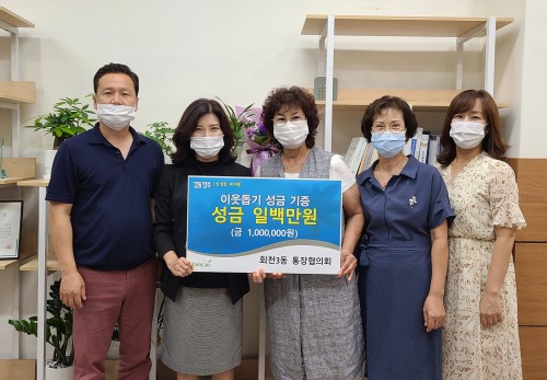 ¾çÁֽà ȸõ3µ¿ ÅëÀåÇùÀÇȸ(ȸÀå ÃÖ¸í¼ø)´Â Áö³ 21ÀÏ È¸Ãµ3µ¿ ÇàÁ¤º¹Áö¼¾Å͸¦ ã¾Æ ÀÌ¿ôµ½±â¼º±Ý 100¸¸¿øÀ» Àü´ÞÇß´Ù.