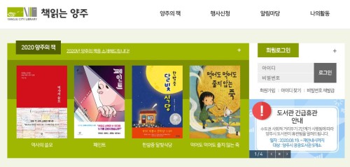 ¾çÁÖ½Ã(½ÃÀå À̼ºÈ£)´Â ¿À´Â 9¿ùºÎÅÍ È¨ÆäÀÌÁö¸¦ ÅëÇÑ ºñ´ë¸é ¿Â¶óÀÎ ºÏÅ¥·¹À̼ÇÀ» ¿î¿µ, µµ¼°üÀ» ¹æ¹®ÇÏÁö ¾Ê¾Æµµ »ç¼°¡ ÃßõÇÏ´Â µµ¼¸¦ ã¾Æº¼ ¼ö ÀÖµµ·Ï ÇÏ´Â µî ½Ã¹Î µ¶¼ ÆíÀǸ¦ Á¦°øÇÑ´Ù.