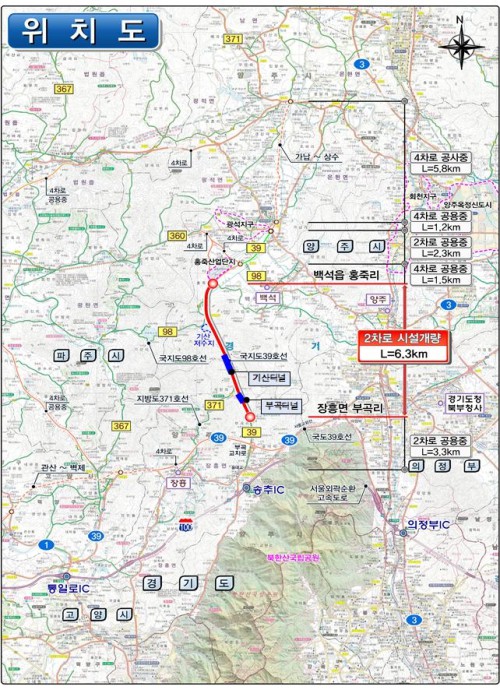 ÀåÈï~±¤Àû ±¸°£ ±¹Áöµµ 39È£¼± µµ·Î°Ç¼³»ç¾÷Àº ÃÑ»ç¾÷ºñ 914¾ï¿øÀ» ÅõÀÔ, ¾çÁֽà ÀåÈï¸é ºÎ°î¸®¿¡¼ ¹é¼®À¾ È«Á׸®±îÁö 6.3§° ±¸°£À» ¿Õº¹ 2Â÷·Î·Î °³·®ÇÏ´Â »ç¾÷ÀÌ´Ù.