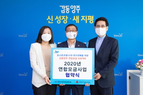 ¾çÁÖ½Ã(½ÃÀå À̼ºÈ£)´Â Áö³ 22ÀÏ ½Ãû ºÎ½ÃÀå½Ç¿¡¼ ¾çÁÖ½ÃÁö¿ª»çȸº¸ÀåÇùÀÇü(°øµ¿À§¿øÀå ¹ÚÃá¹è), °æ±â»çȸº¹Áö°øµ¿¸ð±Ýȸ¿Í ÇÔ²² Äڷγª19 À§±â±Øº¹À» À§ÇÑ ¿¬ÇÕ¸ð±Ý ¾÷¹« Çù¾àÀ» ü°áÇß´Ù°í ¹àÇû´Ù,