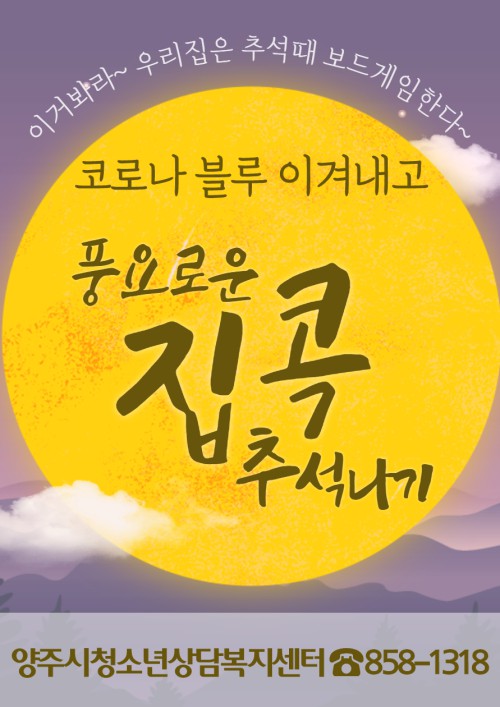 ¾çÁÖ½Ãû¼Ò³â»ó´ãº¹Áö¼¾ÅÍ(¼¾ÅÍÀå ÀÌ»óÇö)´Â Ãß¼® ¸íÀýÀ» ¸Â¾Æ À§±â û¼Ò³âµéÀ» À§ÇÑ ‘dz¿ä·Î¿î ÁýÄÛ Ãß¼®³ª±â’ ÇÁ·Î±×·¥À» ÃßÁøÇÑ´Ù°í ¹àÇû´Ù.