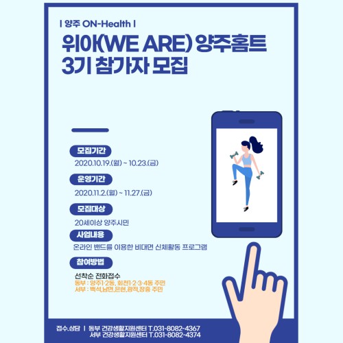 ¾çÁÖ½Ã(½ÃÀå À̼ºÈ£)´Â Æ÷½ºÆ® Äڷγª ½Ã´ë¿¡ ´ëºñÇÑ ºñ´ë¸é On-Line °Ç°ÁõÁø»ç¾÷ÀÎ ‘À§¾Æ(WE ARE) ¾çÁÖȨƮ’ 3±â Âü¿©ÀÚ¸¦ ¸ðÁýÇÑ´Ù°í ¹àÇû´Ù.