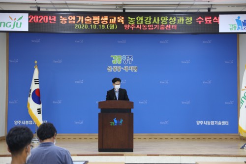 ¾çÁÖ½Ã(½ÃÀå À̼ºÈ£)´Â Áö³ 19ÀÏ ³ó¾÷±â¼ú¼¾ÅÍ ´ë°´ç¿¡¼ ’2020³âµµ ³ó¾÷°»ç ¾ç¼º°úÁ¤‘ ±³À° ¼ö·á½ÄÀ» ¼ºÈ²¸®¿¡ ¸¶ÃÆ´Ù,