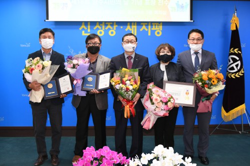 ¾Æ¿ï·¯ ¾çÁֽùλó°ú ÇÔ²² ³ª´®°ú Çùµ¿ÀÇ Áö¿ª°øµ¿Ã¼ Çü¼ºÀ» À§ÇØ Çå½ÅÇÑ 11¸í¿¡°Ô ¸ð¹ü½Ã¹Î»ó, Áö¿ª¹ßÀüÀ» À§ÇØ Çå½ÅÇÑ µµÁ¤¹ßÀü À¯°øÀÚ 8¸í¿¡°Ô °æ±âµµ¹Î»óÀ» °¢°¢ ¼ö¿©Çß´Ù.