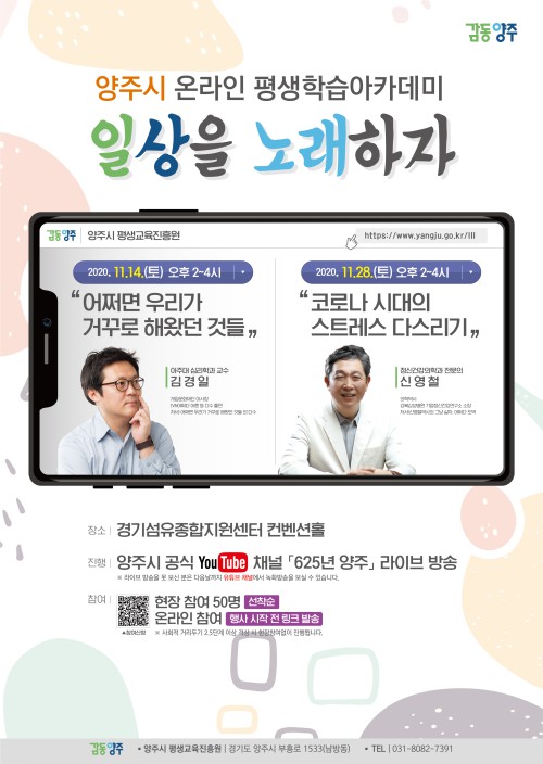 ¾çÁÖ½Ã(½ÃÀå À̼ºÈ£)´Â ¿À´Â 14Àϰú 28ÀÏ ¾çÀϰ£ °æ±â¼¶À¯Á¾ÇÕÁö¿ø¼¾ÅÍ ÄÁº¥¼ÇȦ¿¡¼ ‘2020 ¿Â¶óÀÎ Æò»ýÇнÀ¾ÆÄ«µ¥¹Ì’¸¦ °³ÃÖÇÑ´Ù.
