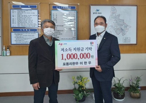 ¾çÁֽà ±¤Àû¸éÀº Áö³ 10ÀÏ °ü³» ¸ð¹üÀ½½ÄÁ¡ Æ÷µ¿¸®ÇÑ¿ì(´ëÇ¥ ÀÌÇÑ¿ì)¿¡¼ ÇàÁ¤º¹Áö¼¾Å͸¦ ¹æ¹®ÇØ ¼Ò¿ÜµÇ°í ¾î·Á¿î ÀÌ¿ôÀ» À§ÇØ ½á´Þ¶ó¸ç ¼º±Ý 100¸¸¿øÀ» ±âŹÇß´Ù°í ¹àÇû´Ù.