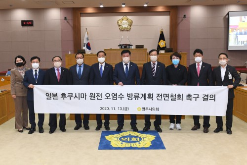 ¾çÁÖ½ÃÀÇȸ(ÀÇÀå Á¤´ö¿µ)´Â 13ÀÏ, Á¦323ȸ ÀÓ½Ãȸ 7Â÷ º»È¸ÀÇ¿¡¼ ‘ÀϺ» ÈÄÄí½Ã¸¶ ¿øÀü ¿À¿°¼ö ¹æ·ù°èȹ Àü¸éöȸ Ã˱¸ °áÀǾȒÀ» äÅÃÇÏ°í ±× ¿Ü¿¡ »óÁ¤µÈ 12°ÇÀÇ ¾È°ÇÀ» ÀǰáÇÑ µÚ ÆóȸÇß´Ù.