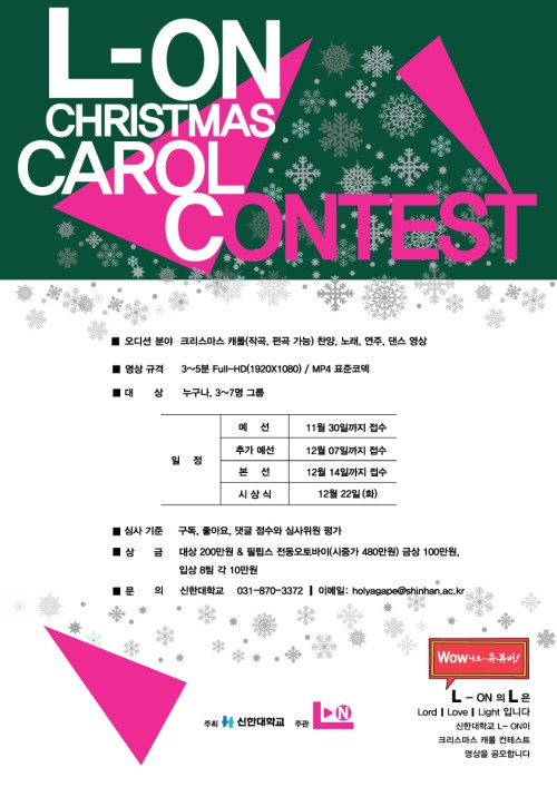 ½ÅÇÑ´ëÇб³(ÃÑÀå °¼ºÁ¾)´Â À¯Æ©ºê ä³ÎÀ» ÅëÇÑ L-ON Å©¸®½º¸¶½º ij·Ñ ÄÜÅ×½ºÆ®¸¦ °³ÃÖÇÑ´Ù.