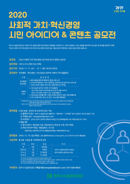 ¾çÁֽýü³°ü¸®°ø´ÜÀº ½ÅÁ¾ Äڷγª¹ÙÀÌ·¯½º °¨¿°Áõ(Äڷγª19) ÀÌÈÄ ´º³ë¸Ö ½Ã´ë¸¦ ¸ÂÀÌÇØ ½Ã¹ÎÀÌ Ã¼°¨ÇÒ ¼ö ÀÖ´Â º¯È¿¡ ´Éµ¿ÀûÀ¸·Î ´ëóÇϱâ À§ÇÏ¿© ‘2020 »çȸÀû °¡Ä¡·Çõ½Å°æ¿µ ½Ã¹Î ¾ÆÀ̵ð¾î&ÄÜÅÙÃ÷ °ø¸ðÀü’À» °³ÃÖÇÑ´Ù°í ¹àÇû´Ù.