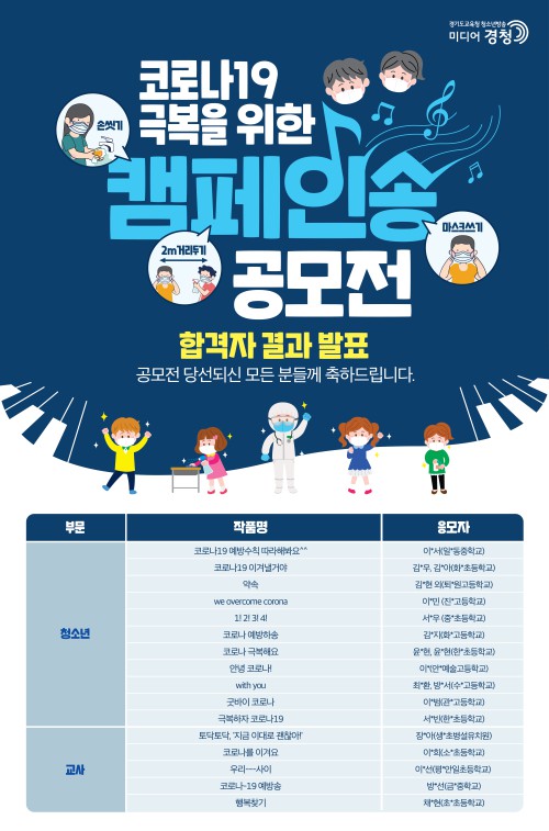 ¼±Á¤µÈ 15°îÀº °æ±âµµ±³À°Ã» û¼Ò³â¹æ¼Û ‘¹Ìµð¾î°æÃ»’ ȨÆäÀÌÁö(http://www.goeonair.com)¿Í ¹Ìµð¾î°æÃ» À¯Æ©ºê ä³Î(https://www.youtube.com/c/¹Ìµð¾î°æÃ»)¿¡¼ È®ÀÎÇÒ ¼ö ÀÖ´Ù. µµ±³À°Ã»Àº ÃßÈÄ ¼±Á¤°î ¿Ü °ø¸ð¿¡ Âü¿©ÇÑ °îµé °¡¿îµ¥ º°µµ ¼±Á¤ÇØ È¨ÆäÀÌÁö¿Í À¯Æ©ºê ä³Î¿¡ ½ÇÀ» °èȹÀÌ´Ù.