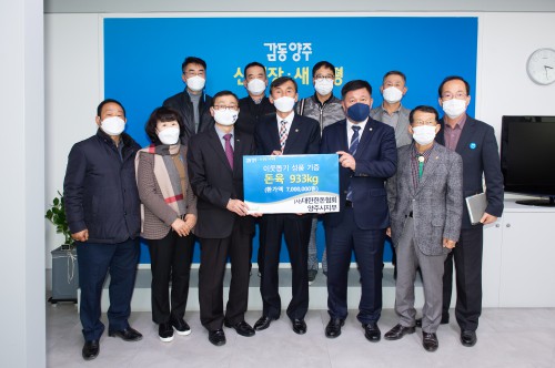 ¶ÇÇÑ °°Àº ³¯ ´ëÇÑÇѵ·Çùȸ ¾çÁÖÁöºÎ(ÁöºÎÀå Á¶¿µ¿í)¿¡¼ ¼Ò¿ÜµÇ°í ¾î·Á¿î ÀÌ¿ôµéÀÇ ½Ä»ýȰ °³¼±À» À§ÇØ µ·À° 933§¸(ȯ°¡¾× 700¸¸¿ø)¸¦ Àü´ÞÇß´Ù.