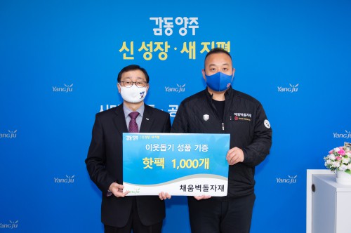 Áö³ 17ÀÏ µ¿µÎõ½Ã ¼ÒÀç ä¿òº®µ¹ÀÚÀç(´ëÇ¥ ÀåÈñÀç)¿¡¼ µ¿Àý±â¸¦ ¸Â¾Æ ¼Ò¿ÜÀÌ¿ôµéÀÇ µû¶æÇÑ °Ü¿ï³ª±â¸¦ Áö¿øÇϱâ À§ÇØ ÇÖÆÑ 1,000°³¸¦ ±âºÎÇß´Ù.