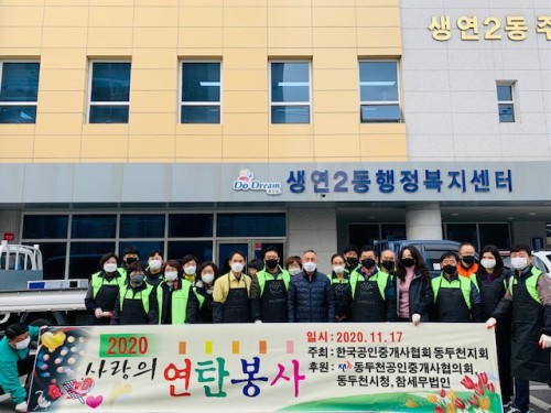 Çѱ¹°øÀÎÁß°³»çÇùȸ µ¿µÎõÁöȸ(ȸÀå Á¶±¸Çü)´Â Áö³ 17ÀÏ »ý¿¬2µ¿ÀÇ ¾î·Á¿î ÀÌ¿ôÀ» À§ÇÑ ¿¬Åº ³ª´® Çà»ç¸¦ °³ÃÖÇØ ´«±æÀ» ²ø¾ú´Ù.