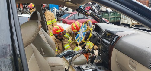 ¾çÁּҹ漴 ±¸Á¶´ëÀå(¼Ò¹æ°æ ÀÌâÀÎ) µî 16¸íÀÌ Âü¼®ÇÑ °¡¿îµ¥ ÆóÂ÷ ¿¹Á¤ÀÎ Â÷·® 2´ë¸¦ µ¿¿øÇØ Â÷·®±¸Á¶¿ë À¯¾ÐÀåºñ¿Í °¢Á¾ ±¸Á¶Àåºñ Ȱ¿ëÀ» ÁßÁ¡À¸·Î ½ÇÀü°ú °°Àº ÀÎ¸í±¸Á¶ÈƷÿ¡ ÀÓÇß´Ù.