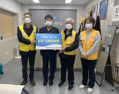 ¾çÁֽà ȸõ1µ¿ Àû½ÊÀÚºÀ»çȸ(ȸÀå ÀÓ¿ëÂù)´Â Áö³ 19ÀÏ È¸Ãµ1µ¿ ÇàÁ¤º¹Áö¼¾Å͸¦ ã¾Æ Äڷγª19·Î °æÁ¦Àû ¾î·Á¿òÀ» °Þ°í ÀÖ´Â À§±âÀÌ¿ôÀ» À§ÇØ ½á´Þ¶ó¸ç ÀÌ¿ôµ½±â ¼º±Ý 100¸¸¿øÀ» ±âºÎÇß´Ù.