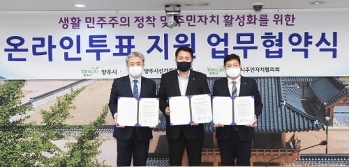 ¾çÁֽü±°Å°ü¸®À§¿øÈ¸(À§¿øÀå ¿Àº´Èñ)´Â 19ÀÏ ¾çÁÖ½Ã, ¾çÁÖ½ÃÁÖ¹ÎÀÚÄ¡ÇùÀÇȸ¿Í ‘¿Â¶óÀÎÅõÇ¥¼ºñ½º Áö¿ø ¾÷¹«Çù¾à½Ä’À» °³ÃÖÇÏ¿´´Ù.