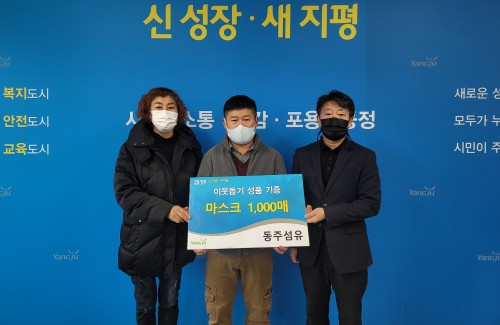 ¾çÁֽà ȸõ4µ¿Àº Áö³ 19ÀÏ À²Á¤µ¿ ¼ÒÀç µ¿ÁÖ¼¶À¯(´ëÇ¥ ±è¼±ÇÏ)¿¡¼ ÇàÁ¤º¹Áö¼¾Å͸¦ ã¾Æ °ü³» ¾î·Á¿î ÀÌ¿ôµé¿¡°Ô Àü´ÞÇØ´Þ¶ó¸ç ¸¶½ºÅ© 1,000ÀåÀ» ±âºÎÇß´Ù°í ¹àÇû´Ù.