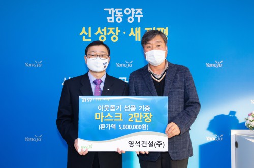 Áö³ 26ÀÏ¿¡´Â °í¾Ïµ¿ ¼ÒÀç ¿µ¼®°Ç¼³(ÁÖ)(´ëÇ¥ ½Å»ó¹«)¿¡¼ Äڷγª19 ¿¹¹æÀ» À§ÇÑ È²Å丶½ºÅ© 20,000ÀåÀ» ±âºÎÇß´Ù.