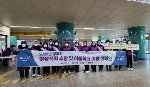 ¾çÁÖ½Ã(½ÃÀå À̼ºÈ£)´Â Áö³ 25ÀÏ ¾çÁÖ¿ª¿¡¼ ¾Æµ¿・¿©¼º Æø·Â ¹®Á¦¿¡ ´ëÇÑ »çȸÀû °æ°¢½ÉÀ» ³ôÀ̰í ÇÇÇØÀÚ À뱂 º¸È£¿¡ ´ëÇÑ ½Ã¹ÎÀÇ ÀÎ½Ä °³¼±À» À§ÇÑ ¹Î·°üÇÕµ¿ Ä·ÆäÀÎÀ» ½Ç½ÃÇß´Ù.
