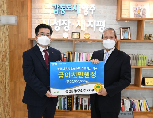 ¾çÁֽà Èñ¸ÁÀåÇÐÀç´Ü(ÀÌ»çÀå ÀÓÃæºó)Àº Áö³ 27ÀÏ NH³óÇùÀºÇà ¾çÁÖ½ÃÁöºÎ(ÁöºÎÀå ¿ÀÁÖÇÐ)¿¡¼ ¾çÁÖ½ÃûÀ» ¹æ¹®ÇØ ÀåÇбâ±Ý 2õ¸¸¿øÀ» ±âŹÇß´Ù°í ¹àÇû´Ù.
