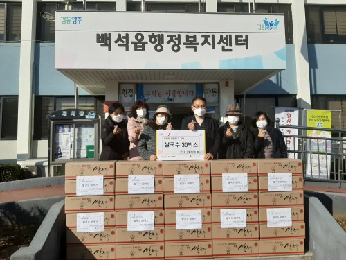 ¾çÁֽà ¹é¼®À¾ »ýȰ°³¼±È¸(ȸÀå Àå¸í¼÷)´Â Áö³ 11¿ù30ÀÏ ¹é¼®À¾ ÇàÁ¤º¹Áö¼¾Å͸¦ ¹æ¹®ÇØ Áö¿ª ³» ¾î·Á¿î ÀÌ¿ôµé¿¡°Ô Àü´ÞÇØ´Þ¶ó¸ç ½Ò±¹¼ö 30¹Ú½º¸¦ ±âºÎÇß´Ù.