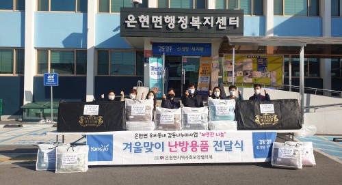 ¾çÁֽà ÀºÇö¸é Áö¿ª»çȸº¸ÀåÇùÀÇü(°øµ¿À§¿øÀå ¹Ú¿µÃ¶)´Â Áö³ 1ÀÏ ¿ì¸®µ¿³× °¨µ¿³ª´©¹Ì»ç¾÷ ‘µû¶æÇÑ ³ª´®’ÀÇ ÀÏȯÀ¸·Î °Ü¿ïö ÇÑÆÄ¿¡ ´ëºñÇØ °ü³» Ãë¾à°¡Á¤ 32°¡±¸¿¡ Àü±â¸ÅÆ®, ÀÌºÒ µî ³¹æ¿ëǰÀ» Àü´ÞÇß´Ù.