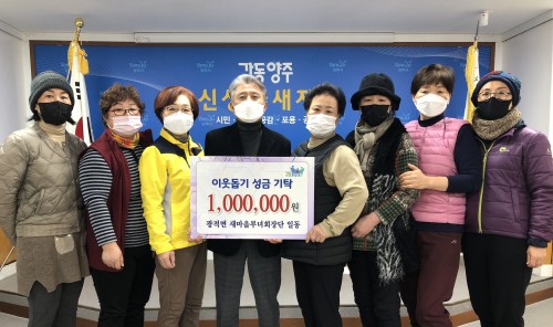 ¾çÁֽà ±¤Àû¸é »õ¸¶À»ºÎ³àȸ(ȸÀå ÀÌżø)´Â 7ÀÏ ±¤Àû¸é ÇàÁ¤º¹Áö¼¾Å͸¦ ¹æ¹®ÇØ Äڷγª19·Î ¾î·Á¿òÀ» °Þ°í ÀÖ´Â Ãë¾à°èÃþÀ» µ½±â À§ÇØ ¼º±Ý 100¸¸¿øÀ» ±âŹÇß´Ù.