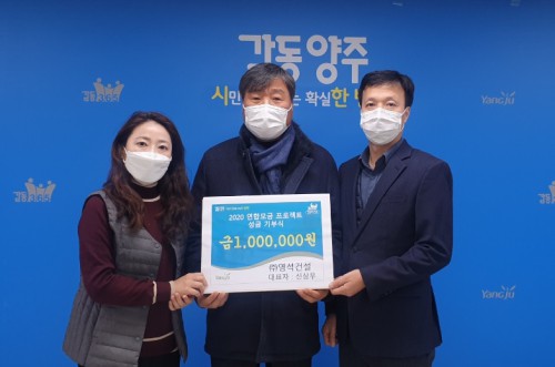 ¾çÁֽà ÀºÇö¸éÀº Áö³ 10ÀÏ °í¾Ïµ¿ ¼ÒÀç ¿µ¼®°Ç¼³(ÁÖ)(´ëÇ¥ ½Å»ó¹«)¿¡¼ ÇàÁ¤º¹Áö¼¾Å͸¦ ã¾Æ °ü³» ¼Ò¿Ü°èÃþÀÇ »ýȰ¾ÈÁ¤À» À§ÇÑ ¿¬ÇÕ¸ð±Ý ¼º±Ý 100¸¸¿øÀ» Àü´ÞÇß´Ù.