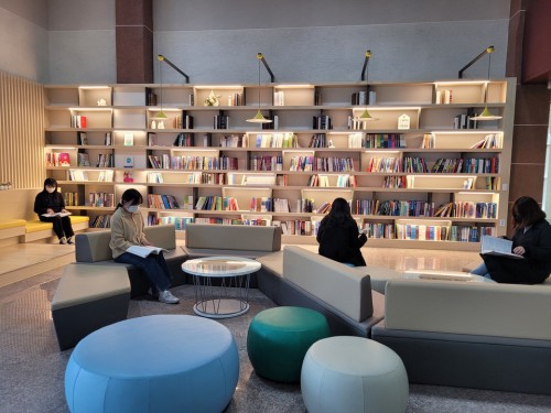 Çлý ÈްԽǿ¡´Â ÇлýµéÀÌ ½¬°í ½ÍÀ» ¶§ Æí¾ÈÇÏ°Ô ½¯ ¼ö ÀÖµµ·Ï ¸®Å¬¶óÀ̳ʸ¦ ¹èÄ¡Çϰí, 1Ãþ °ÀÇ½Ç ¾ÕÂÊ¿¡ ÇлýµéÀÌ ³ëÆ®ºÏÀ» »ç¿ëÇÏ¿© ÇнÀÇÒ ¼ö ÀÖ´Â ½ºÅ©¸°À» ¼³Ä¡ÇÑ ½ºÅ͵ð ·ë °ø°£µµ ¸¸µé¾ú´Ù. 1300¿© ±ÇÀÇ Ã¥°ú Çлý º¹Áö½Ã¼³ÀÇ ÀϺδ ¹ßÀü±â±ÝÀ¸·Î È®ÃæµÆÀ¸¸ç ÀÌ¿Í °°Àº Çлýº¹Áö½Ã¼³ ¹× ±³À°½Ã¼³ È®Ãæ ³ë·Â¿¡ ÇлýµéÀÇ ¸¸Á·µµ°¡ ´ëÆø Çâ»óµÆ´Ù.