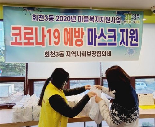 ¾çÁֽà ȸõ3µ¿ Áö¿ª»çȸº¸ÀåÇùÀÇü(°øµ¿À§¿øÀå ±è¿ëÃá)´Â Áö³ 7Àϰú 8ÀÏ ¾çÀϰ£ °ü³» Àú¼Òµæ Ãë¾à°¡Á¤À» ´ë»óÀ¸·Î Äڷγª19 °¨¿° ¿¹¹æÀ» À§ÇÑ ¸¶½ºÅ© Áö¿ø»ç¾÷À» ÁøÇàÇß´Ù.