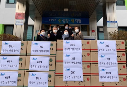 ¾çÁֽà ±¤Àû¸é »ýȰ°³¼±È¸(ȸÀå ÀÌÁ¤ÀÚ)´Â Áö³ 11ÀÏ ±¤Àû¸é ÇàÁ¤º¹Áö¼¾Å͸¦ ã¾Æ Äڷγª19¿Í ÇÑÆÄ·Î ¾î·Á¿î ½Ã±â¸¦ º¸³»°í ÀÖ´Â ºÒ¿ìÀÌ¿ôµé¿¡°Ô Àü´ÞÇØ´Þ¶ó¸ç ½Ò¶±±¹ 30¹Ú½º(ȯ°¡¾× 55¸¸¿ø)¸¦ ±âºÎÇß´Ù.