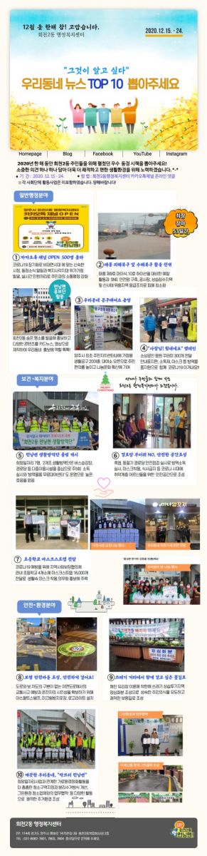 2020³â ÇÑ ÇØ¸¦ ºû³½ ȸõ2µ¿ 10´ë ´º½º´Â ÀϹÝÇàÁ¤ºÐ¾ß¿¡ ¡ãȸõ2µ¿ ÇàÁ¤º¹Áö¼¾ÅÍ Ä«Ä«¿ÀÅå ä³Î °³¼³ ¡ãÅÂdz ÇÇÇØ ¹× ¼öÇØ º¹±¸ ¡ã¿ì¸®µ¿³× °ø±¸´ë¿©¼Ò ¿î¿µ ¡ã‘»çÀå´Ô! Èû³»¼¼¿ä’ ¼Ò»ó°øÀÎ ÀÀ¿øÄ·ÆäÀÎ µîÀÌ ¼±Á¤µÆ´Ù.