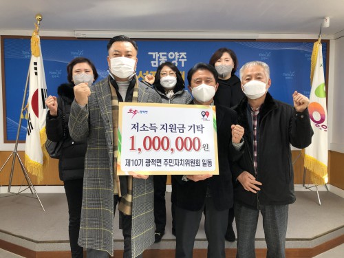 ¾çÁֽà ±¤Àû¸é ÁÖ¹ÎÀÚÄ¡À§¿øÈ¸(À§¿øÀå Á¤±¤Çö)´Â Áö³ 15ÀÏ ±¤Àû¸é ÇàÁ¤º¹Áö¼¾Å͸¦ ¹æ¹®ÇØ ¿¬¸»À» ¸Â¾Æ ¾î·Á¿î ÀÌ¿ôÀ» µ½±â À§ÇÑ ¼º±Ý 100¸¸¿øÀ» ±âºÎÇß´Ù.