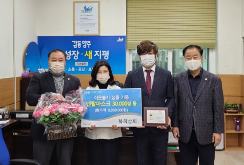 ¾çÁֽà ȸõ3µ¿Àº 28ÀÏ ÇàÁ¤º¹Áö¼¾ÅÍ µ¿Àå½Ç¿¡¼ °æ±â»çȸº¹Áö°øµ¿¸ð±Ýȸ ³ª´®¸®´õ °¡ÀÔ¿¡ µû¸¥ ÀÎÁõÆÐ ¼ö¿©½Ä°ú ¼ºÇ° ±âºÎ½ÄÀ» °³ÃÖÇß´Ù.