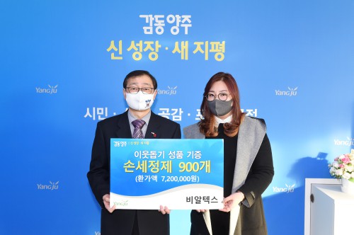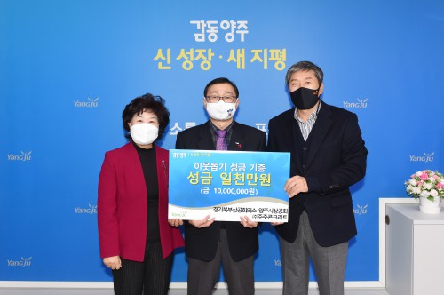 ¾çÁÖ½Ã(½ÃÀå À̼ºÈ£)´Â Áö³ 29ÀÏ °æ±âºÏºÎ»ó°øÈ¸ÀÇ¼Ò ¾çÁֽûó°øÈ¸(ȸÀå ¹Úâ¼÷)¿Í ¢ßÁÖÁÖÄÜÅ©¸®Æ®(´ëÇ¥ ÃÖÁ¾¼±)¿¡¼ ¿¬¸» ¾î·Á¿î ÀÌ¿ôÀ» À§ÇØ »ç¿ëÇØ´Þ¶ó¸ç ¼º±Ý 1,000¸¸¿øÀ» ±âºÎÇß´Ù°í ¹àÇû´Ù.