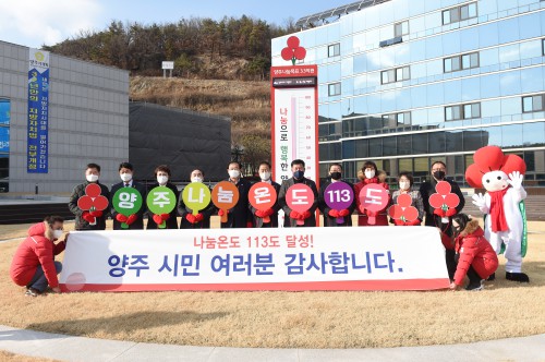 ¾çÁÖ½Ã(½ÃÀå À̼ºÈ£)´Â 2ÀÏ ½Ãû ¿øÇü±¤Àå¿¡ ¼³Ä¡µÈ »ç¶ûÀÇ ¿ÂµµÅ¾ ¾Õ¿¡¼ ‘Èñ¸Á 2021 ³ª´®Ä·ÆäÀÎ’ Æó¸·½Ä Çà»ç¸¦ °³ÃÖÇß´Ù.