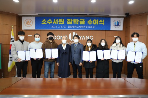 µ¿¾ç´ë(ÃÑÀå ±Ç±¤¼±)´Â 3ÀÏ Á¦2ȸ ¼Ò¼ö¼¿øÀåÇÐ±Ý ÀåÇÐÁõ¼ ¼ö¿©½ÄÀ» °³ÃÖÇß´Ù. ¼Ò¼ö¼¿øÀº ¼Ò¼ö¼¿øÀåÇбÝÀ¸·Î µ¿¾ç´ëÇб³¿¡ Áö³ 2018³â¿¡ ÀÌ¾î ¸Å³â ±âºÎ ¾àÁ¤½ÄÀ» ÅëÇÑ ÀÎÀç¾ç¼º±â±ÝÀ¸·Î 2ȸ° À̾îÁ® ¿À°í ÀÖ´Ù.