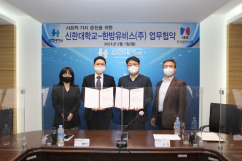 ½ÅÇÑ´ëÇб³(ÃÑÀå °¼ºÁ¾)´Â 1ÀÏ »çȸÀû °¡Ä¡ ÁõÁøÀ» À§ÇØ Áß¼Ò º¥Ã³±â¾÷ºÎ “¸í¹®Àå¼ö±â¾÷”À¸·Î ¼±Á¤µÈ ÇѹæÀ¯ºñ½º(ÁÖ)(´ëÇ¥ÀÌ»ç ÃÖµÎÂù)¿Í ¾÷¹«Çù¾à(MOU)À» ü°áÇß´Ù.