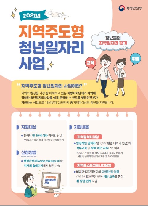 2021³â Áö¿ªÁÖµµÇü û³âÀÏÀÚ¸®»ç¾÷ÀÇ ÀÏȯÀ¸·Î ÃßÁøÇÏ´Â À̹ø »ç¾÷Àº °ü³» ¹ÌÃë¾÷ û³âÀÇ Àü°ø°ú Àû¼ºÀ» °í·ÁÇÑ ¸ÂÃãÇü ÀÏÀÚ¸® Á¦°øÀ¸·Î ±â¾÷ÀÇ ÀΰǺñ ºÎ´ã°ú Àη³ ÇØ¼Ò, ¾ÈÁ¤ÀûÀΠû³â°í¿ëÀ» À§ÇØ ¸¶·ÃÇß´Ù.