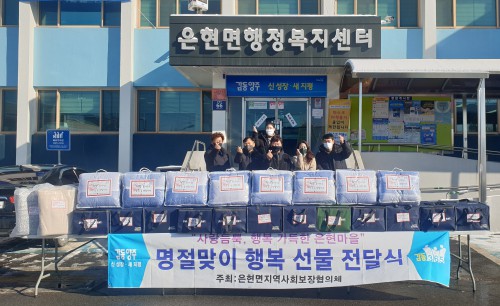 ¾çÁֽà ÀºÇö¸é Áö¿ª»çȸº¸ÀåÇùÀÇü(À§¿øÀå ¹ÚÈï¼ö, °øµ¿À§¿øÀå ¹Ú¿µÃ¶)´Â Áö³ 4ÀÏ ¼³ ¸íÀýÀ» ¸Â¾Æ ¼Ò¿ÜµÈ ÀÌ¿ôÀ» µ½±â À§ÇØ ‘»ç¶û µë»Ò, Çູ °¡µæ’ ¼±¹° Àü´Þ½ÄÀ» ÁøÇàÇß´Ù.