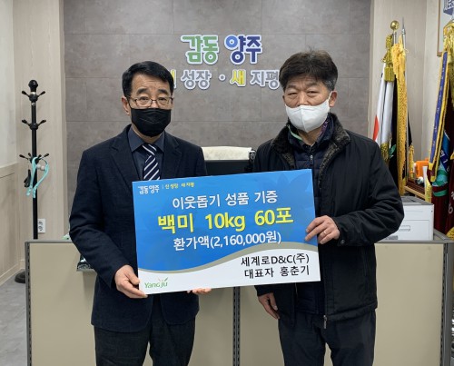 ¢ß¼¼°è·Î D&C(´ëÇ¥ È«Ãá±â)¿¡¼ Áö³ 5ÀÏ È¸Ãµ1µ¿ ÇàÁ¤º¹Áö¼¾Å͸¦ ¹æ¹®ÇØ ¼³ ¸íÀý ¸Â¾Æ ¾î·Á¿î ÀÌ¿ô¿¡°Ô ÀüÇØ ´Þ¶ó¸ç ¹é¹Ì 10kg 60Æ÷(216¸¸¿ø »ó´ç)¸¦ ±âºÎÇß´Ù.
